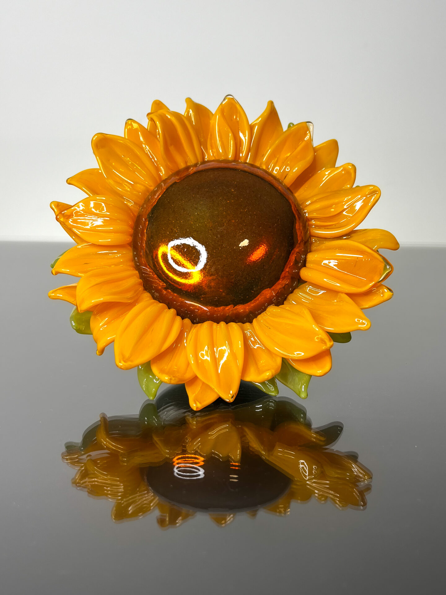 Sculpted Glass Sunflower with mirrored center